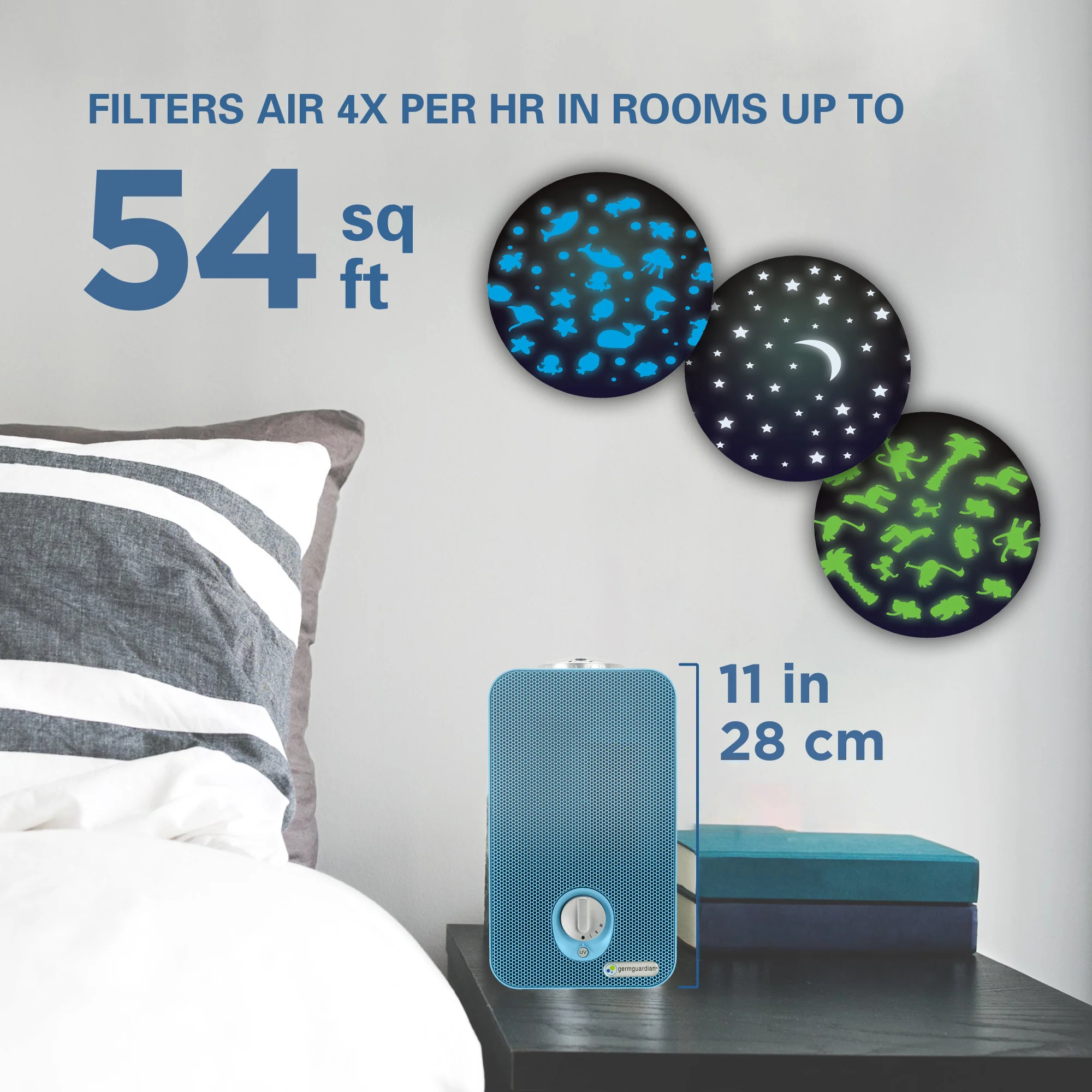 GermGuardian AC4150 4-in-1, Air Purifier with HEPA Filter, UV-C Sanitizer and Night Light Projector For Kids Room (blue)
