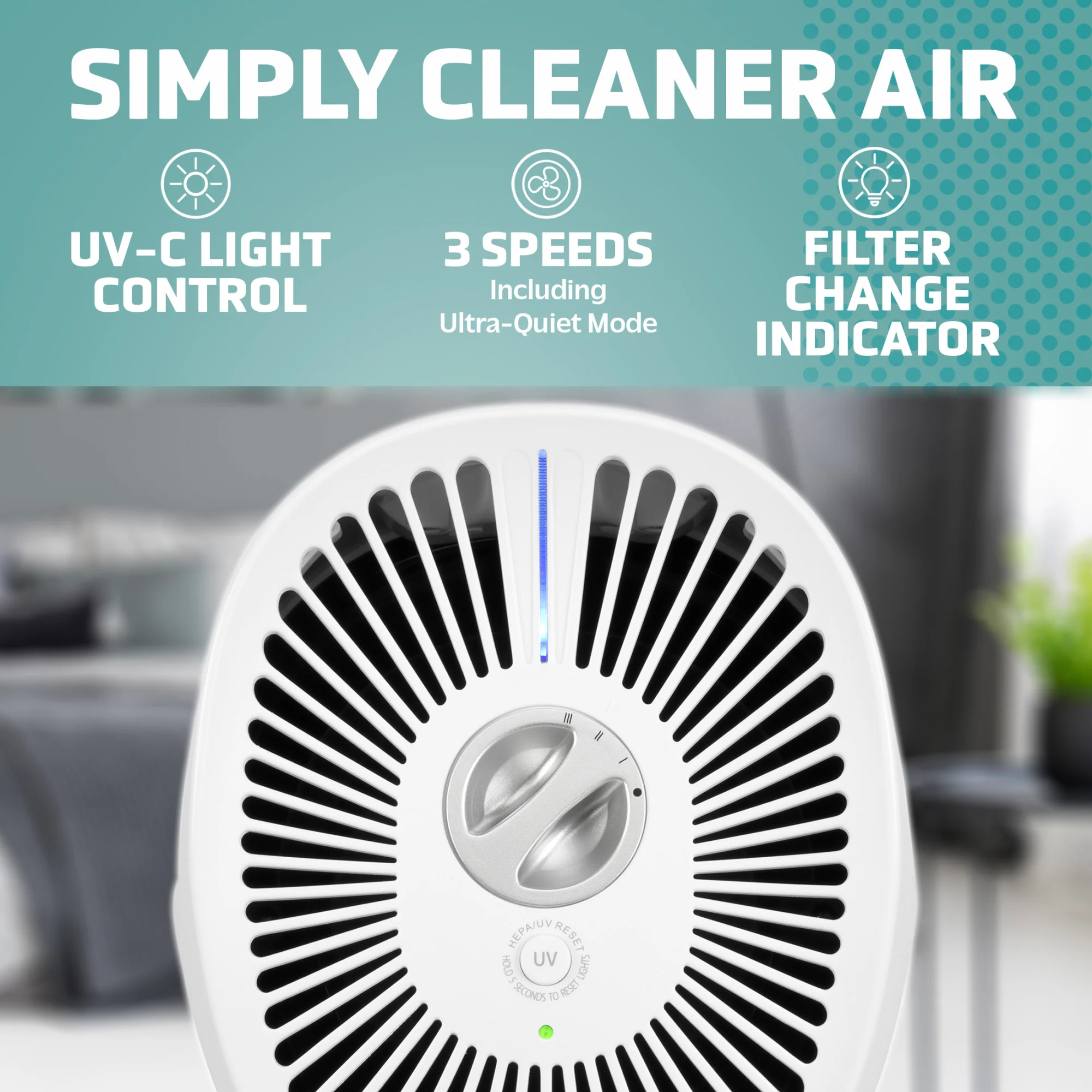 For added protection, the optional UV-C light works to reduce airborne allergens, germs, bacteria, and mold spores**, while the activated carbon layer helps reduce common household odors from pets, cooking, and smoke. This Zero Ozone Certified purifier is independently tested for safety and peace of mind.
